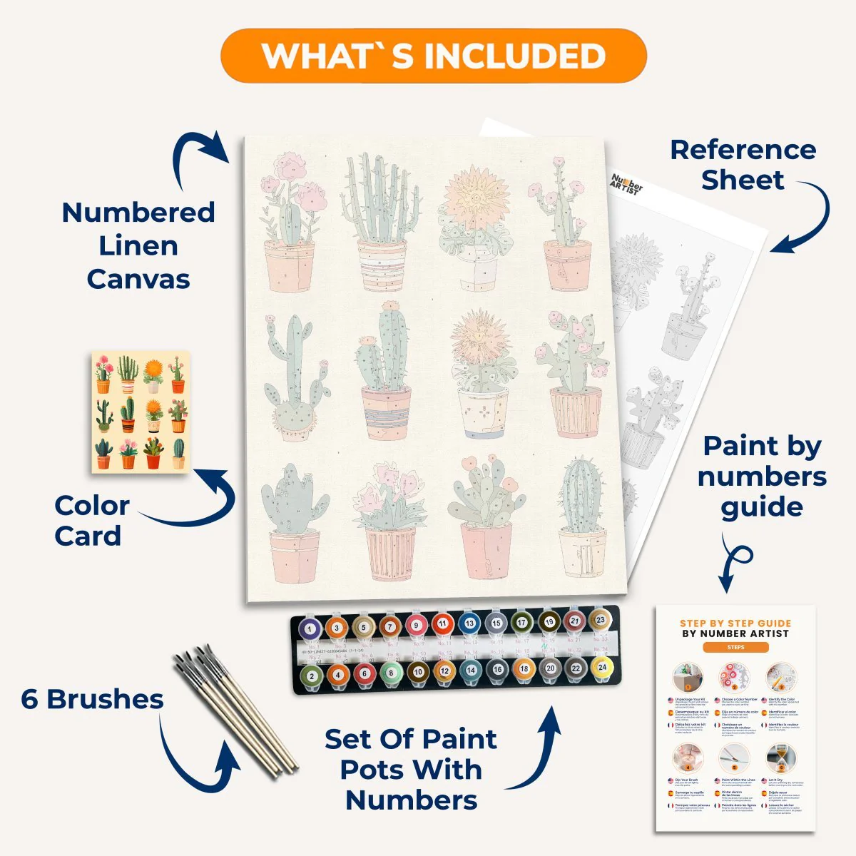 Unleash your creativity and find inner peace with our Cacti Collection. Paint by numbers while meditating and create beautiful images of cactuses in unique vases. Perfect for a peaceful and playful activity. Get the green therapy you need in a fun and quirky way.