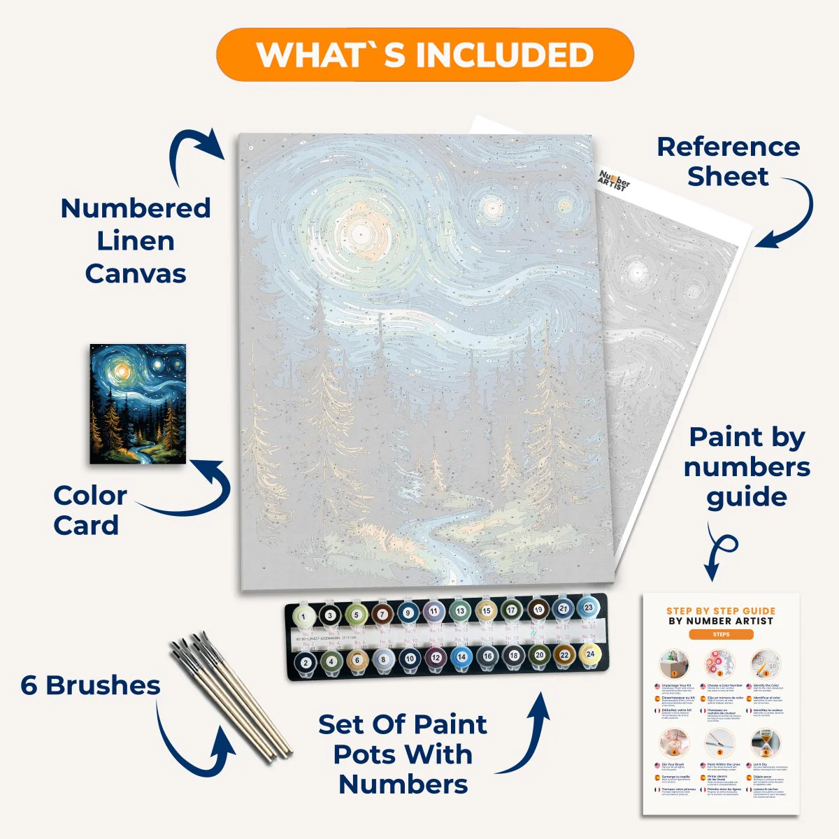 Get creative and de-stress with Night Swirl, the perfect combination of meditation and painting! Paint by numbers while immersed in a surreal night sky, illuminated by the moon as it dances over the peaceful woods and stream. Relax and let your imagination swirl with this unique and calming experience.
