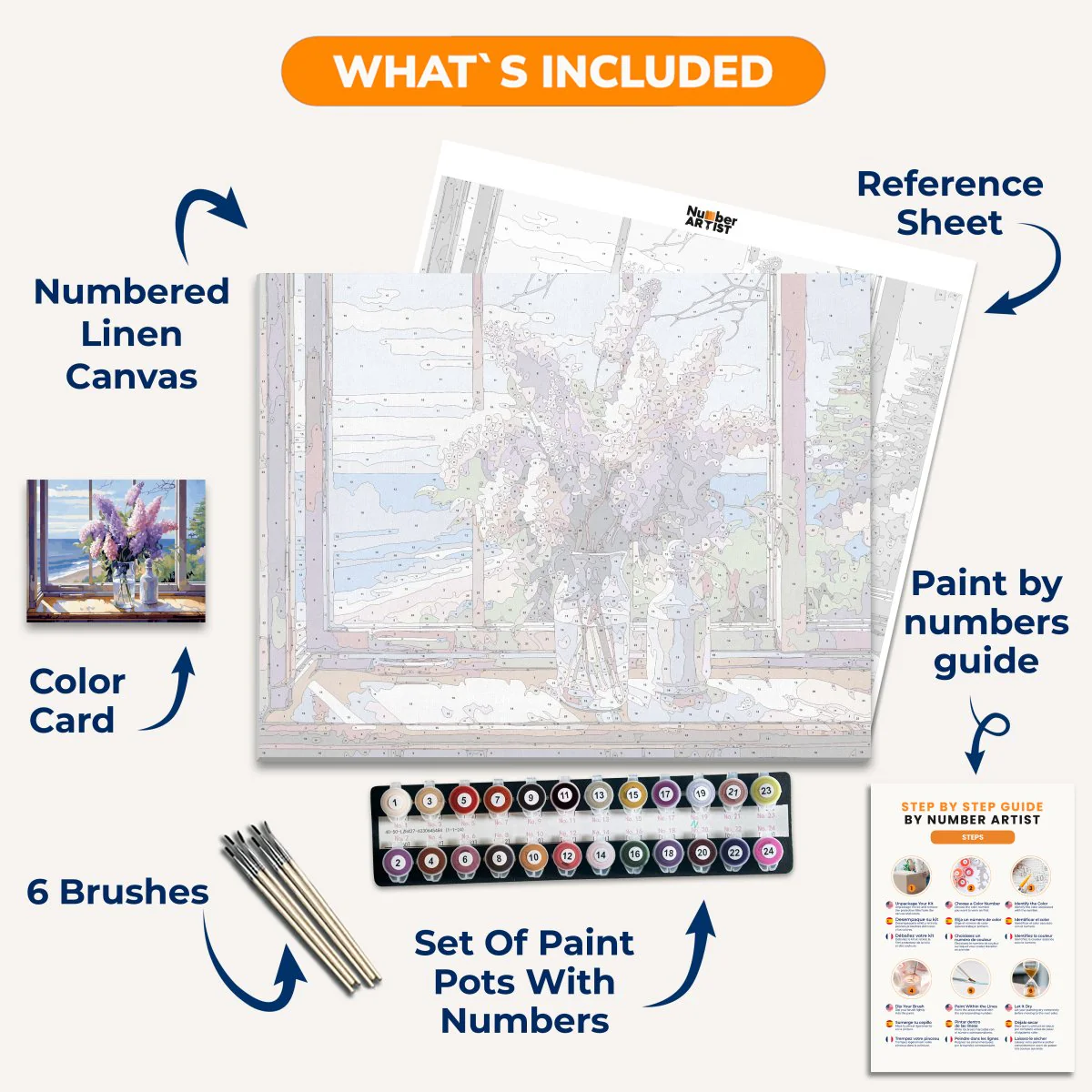 Unleash your inner artist and find calm with Vivid Flora's Embrace. Paint by numbers and meditate as you create a stunning canvas of baby pink flowers in a glass vase, framed by a serene beach landscape. Experience peace and beauty in every brushstroke.